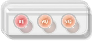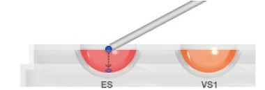 1.- Using the micropipette, fill the Vitri Plate wells with 300μℓ ES and 300μℓ VS respectively (fig. 1). Immediately place the lid on the Vitri Plate.
