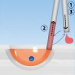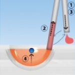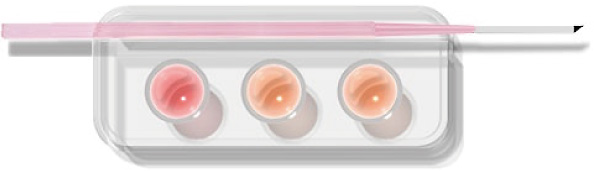 5.- Tap the pipette on the Vitrification method strip to place small droplets of VS2 until you see the oocyte/embryo come out. The proportion of the diameter of the droplet compared to the oocyte/embryo should be about 2:1.